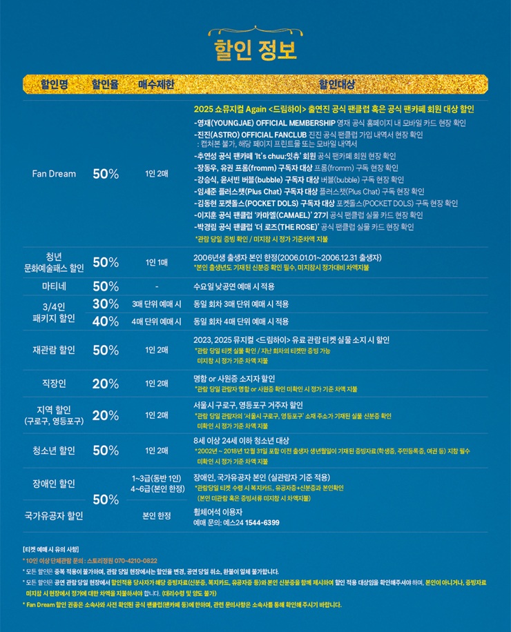 *예매 마감 : 공연 시작 3시간 전